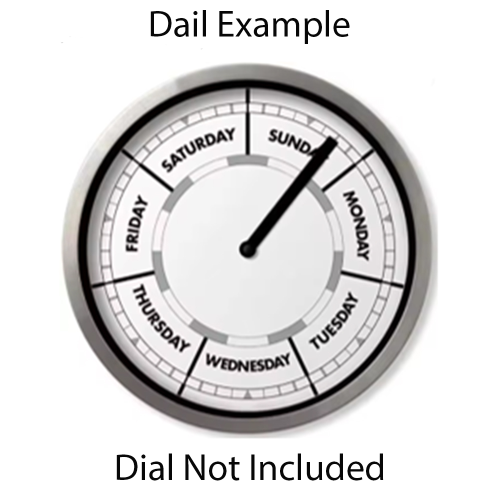 This Quartz clock movement runs with one hand. The indicator hand runs at 1 revolution per 7 days (51.4 degrees per day). Ideally suited for memory and Alzheimer clocks with a Monday to Sunday indication on the dial.