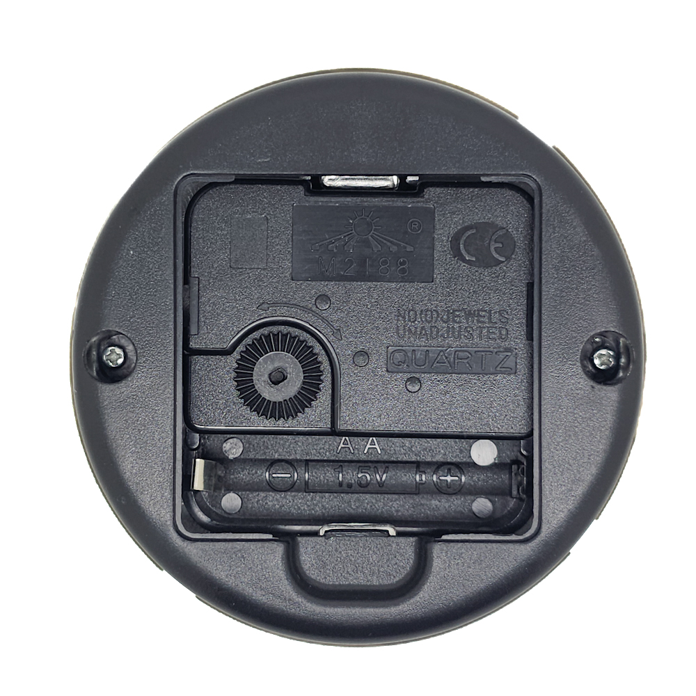 • 103mm Quartz plastic clock insert movement with silver bezel, gold face and black Roman numbers