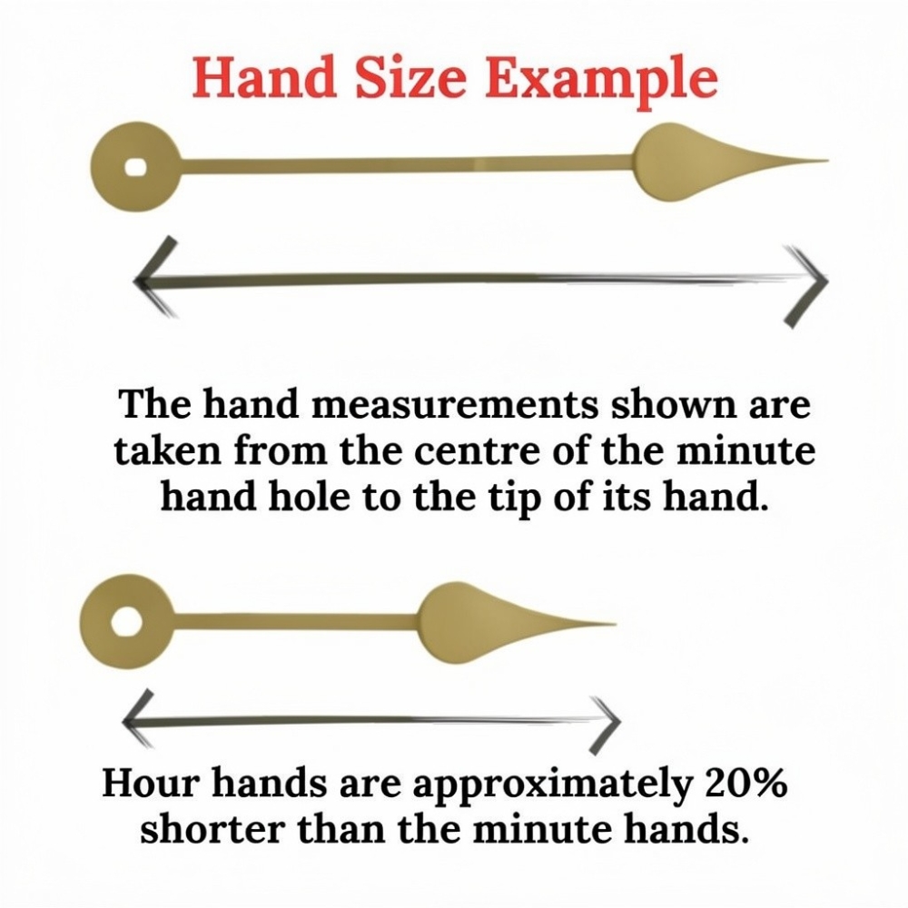 • Hand measurements shown are taken from the centre of the minute hand hole to the tip of the minute hand.