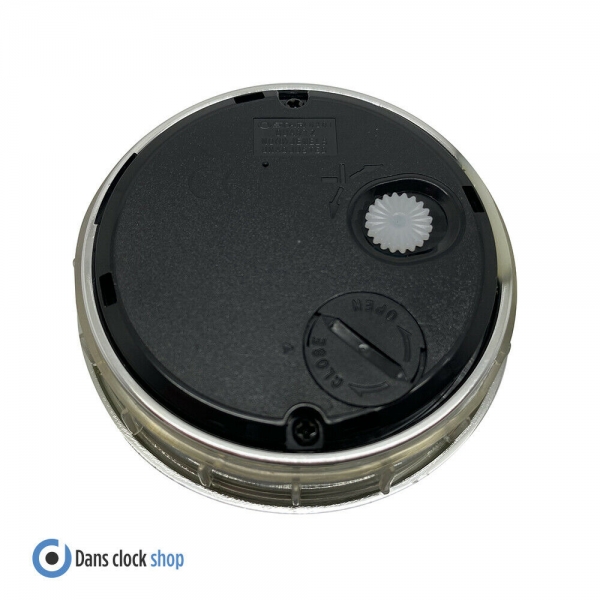 61mm Quartz plastic clock insert movement with silver bezel, white face, and black Roman numbers.